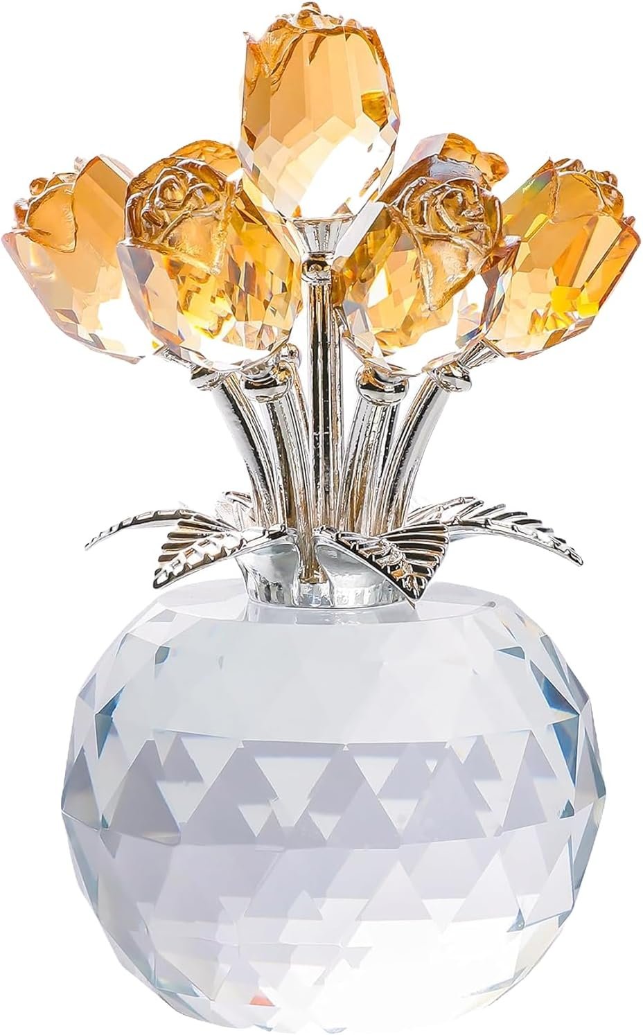 - 🍀K9 Crystal Rose Flower – Made of K9 crystal, rose flower figurines offers a high refractive index and high clarity. A special choice for office home decor, the colors are bright and gorgeous, when it’s sunny it shines.