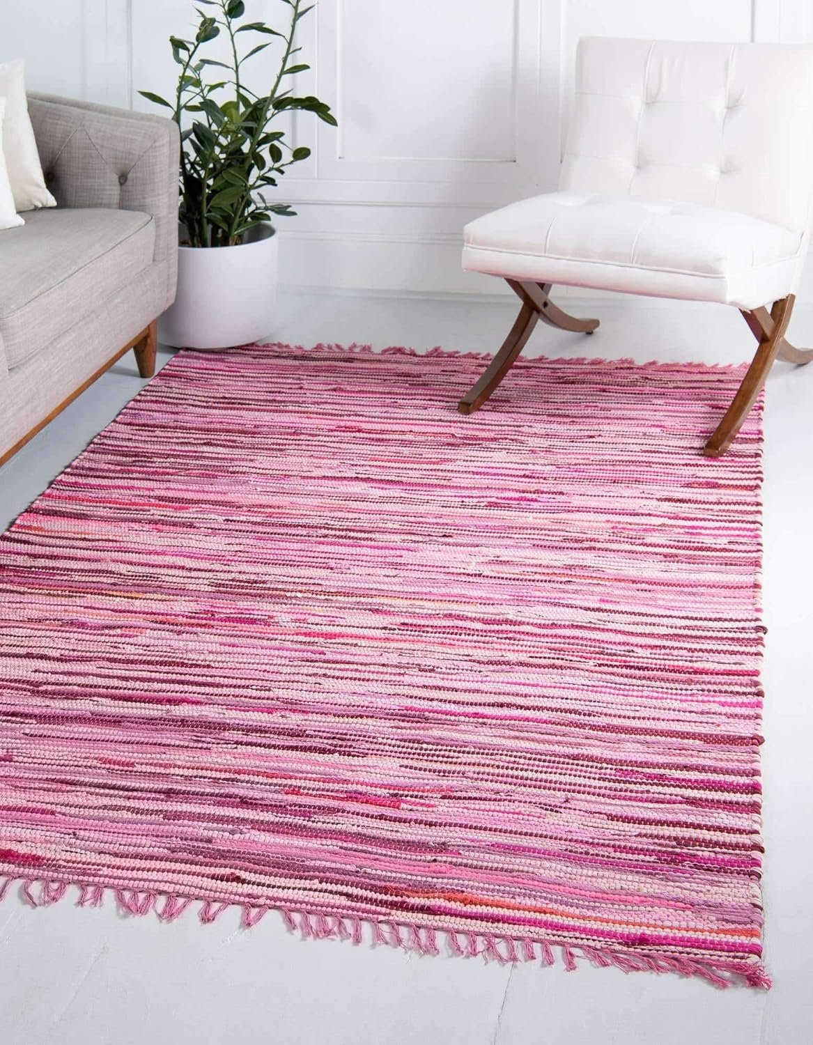 Hand Woven Natural Fibers Area Rug_, 4 ft x 6 ft, Pink/Ivory
