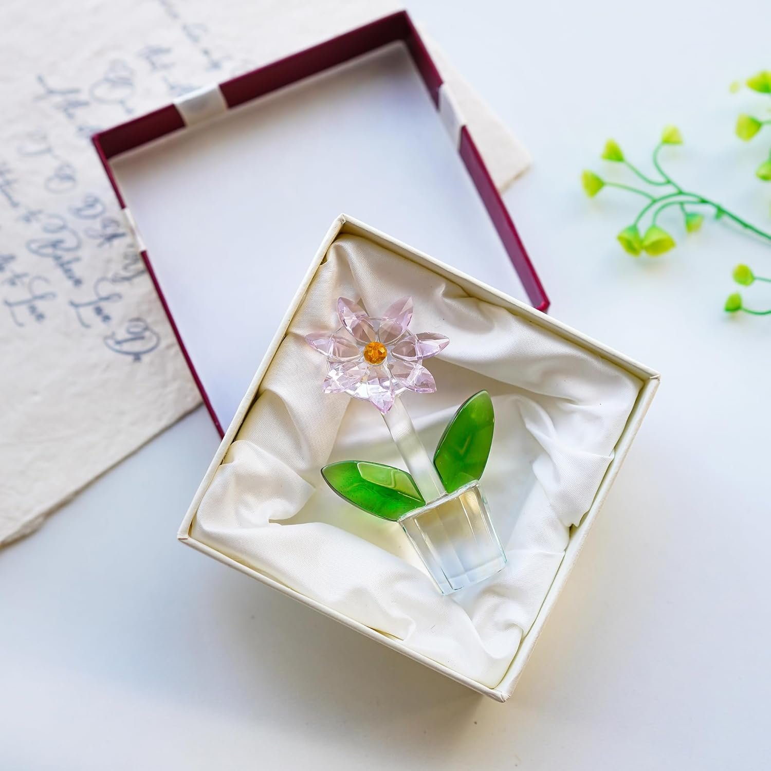 - Material: The mini flower made of high quality K9 crystal, which offers a high refractive index and high clarity.