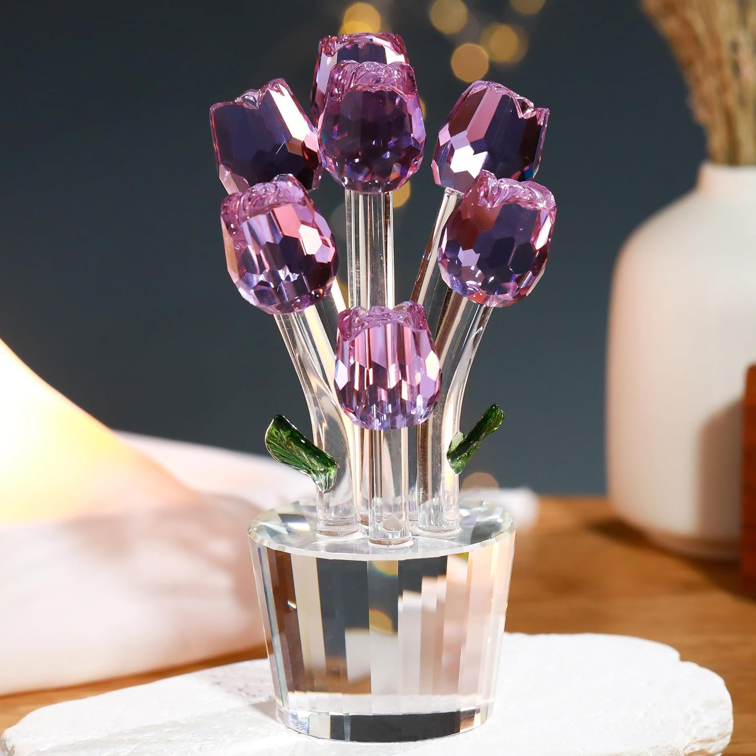 - High Quality Material: Crystal Glass Rose figurine is made of high-quality K9 crystal and metal, very elegant and beautiful, and unlike flowers that wither. The 7 blooming roses on the crystal figurinee of each rose is handmade, exquisite and gorgeous.