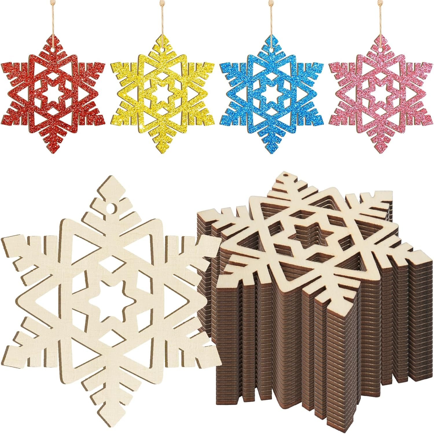 - Christmas Decoration – The blank wooden Christmas Snowflake ornaments have a nice shape with the ornament detail at the top for hanging (Come with string). The blank design gives you plenty of options. Both sides are sanded to a smooth finish, and the burned edges are smooth and flat.